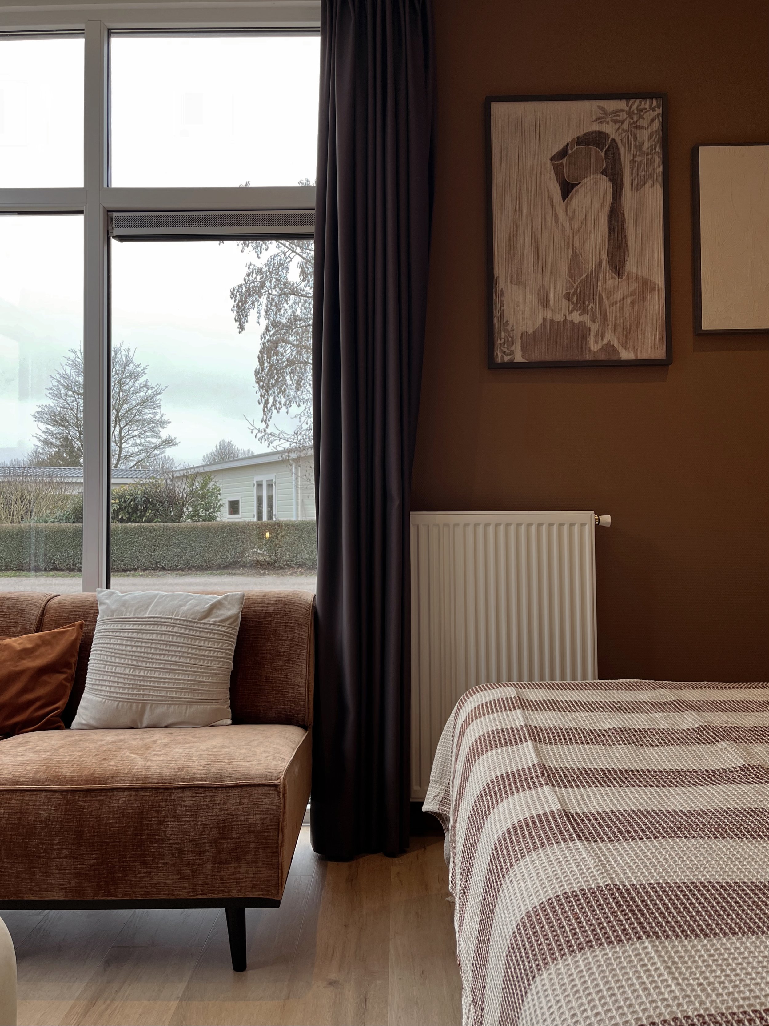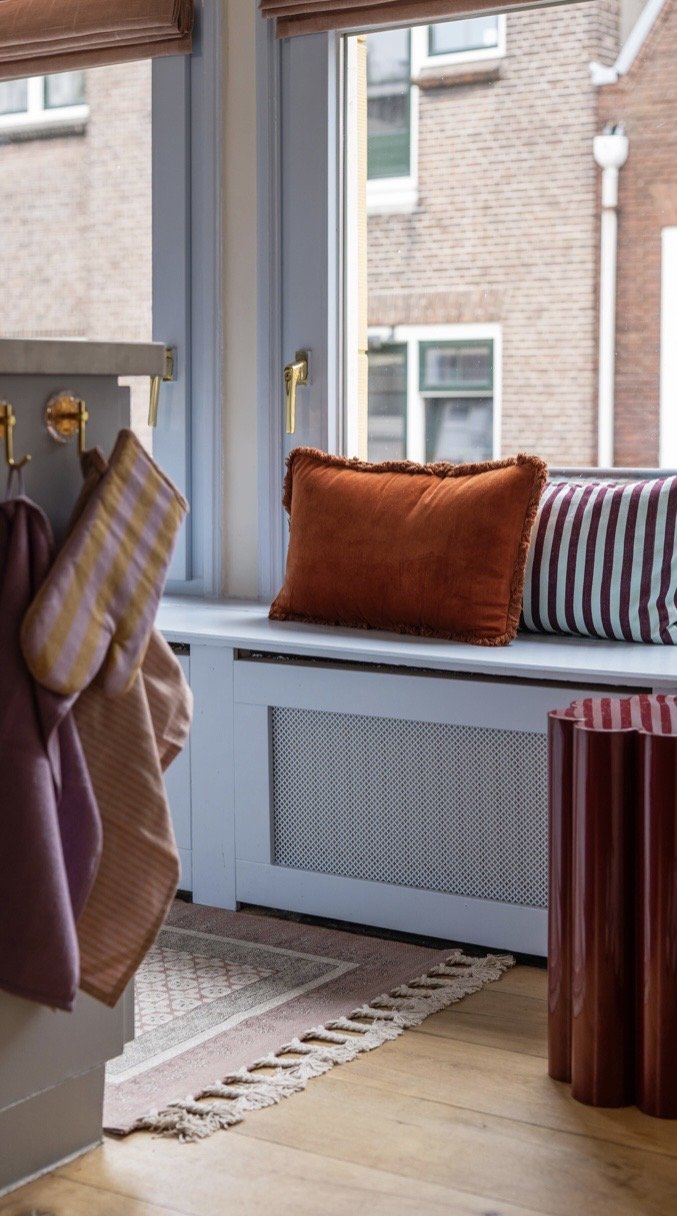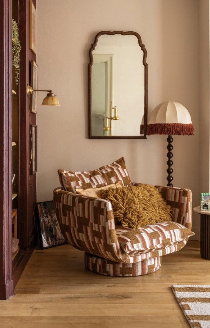 De basis heb ik rustig gehouden met zandtinten op de wand, een zachte vloer en natuurlijke materialen. Zo ontstaat er een plek waar je écht kunt thuiskomen. Geen overdaad aan accessoires, maar kleur, structuur en balans.