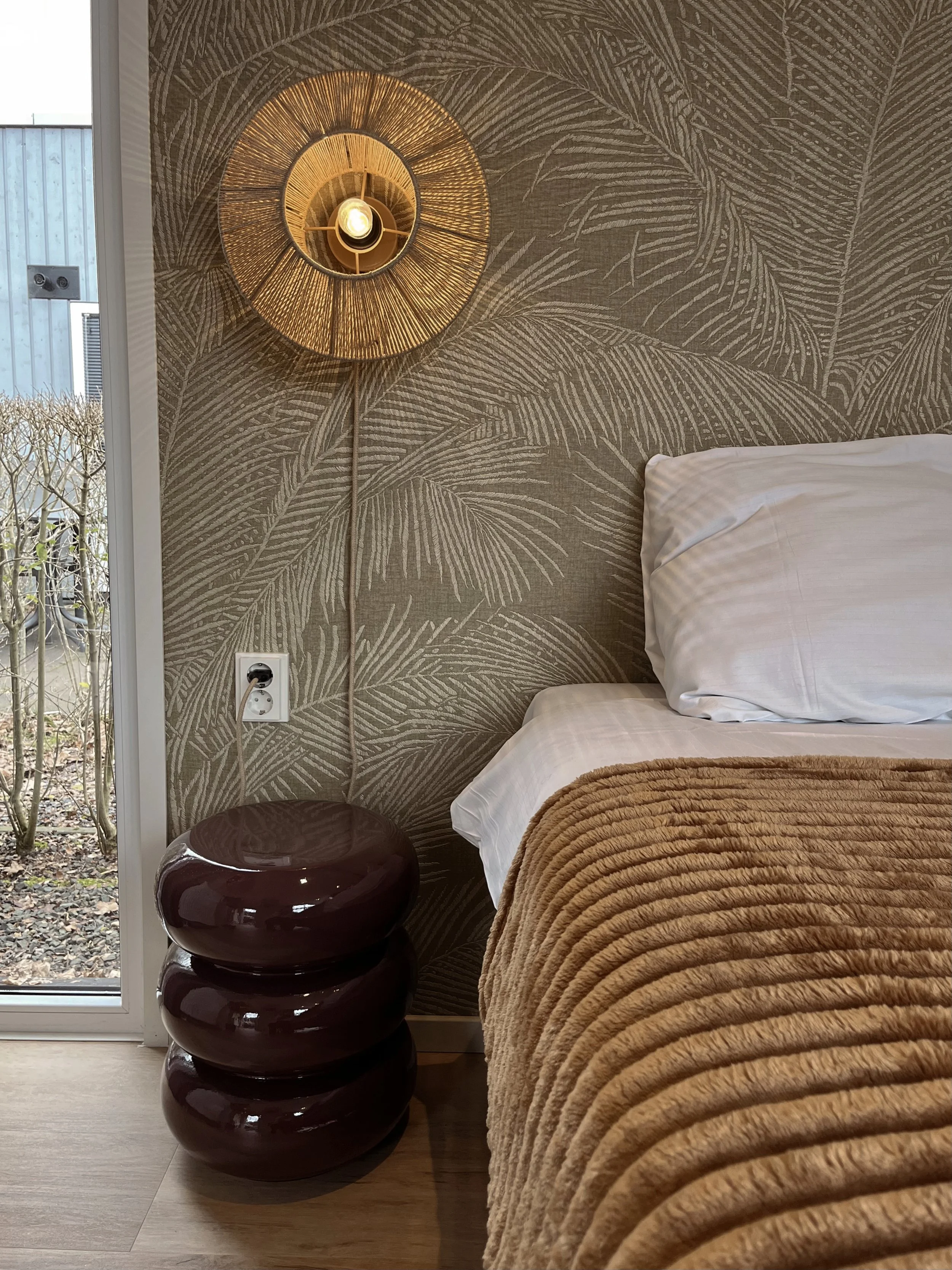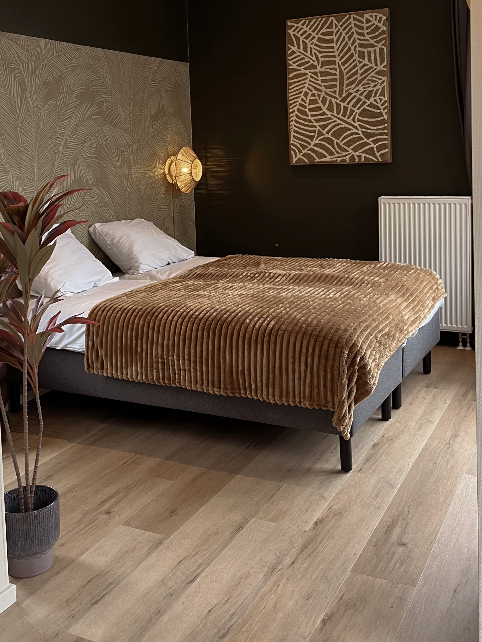 Voor deze hotelkamer was het uitgangspunt duidelijk: een warme, uitnodigende sfeer creëren waarin gasten direct tot rust komen, maar die tegelijkertijd onderscheidend en sfeervol aanvoelt.